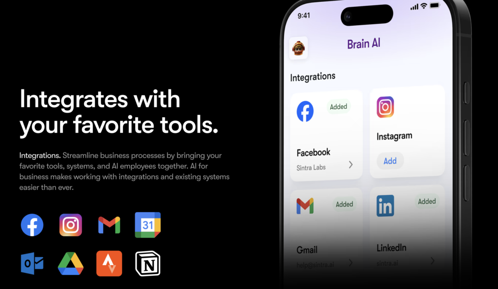 Q3: Can Sintra AI integrate with my existing business software? A3: Absolutely! Sintra AI offers seamless integrations with many leading business tools and platforms, including Google Calendar, Notion, Facebook, Gmail, LinkedIn, Instagram, Outlook, Quickbooks, and more. This ensures that your AI helpers for business can operate within your current ecosystem, streamlining business processes and data flow.